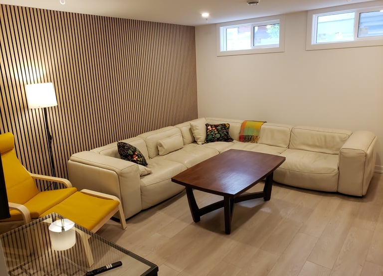 Freshly renovated and modern this space offers a private guest suite with lots of natural light. The master bedroom has a queen size bed and walk-in closet. Heated floors in the full bathroom ease you into the day. Laundry is shared but just outside your private space. Private and assigned parking is included.